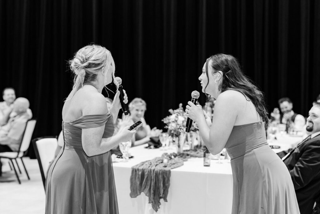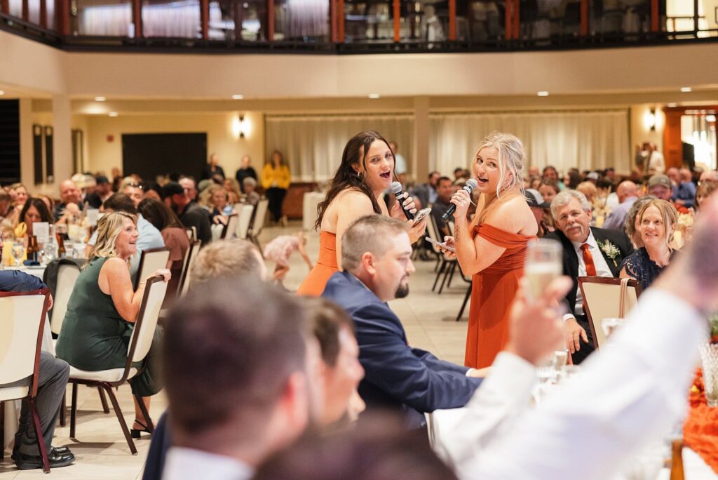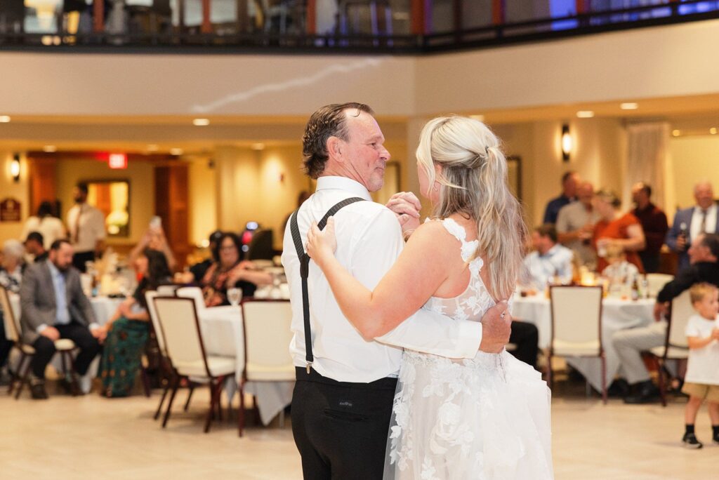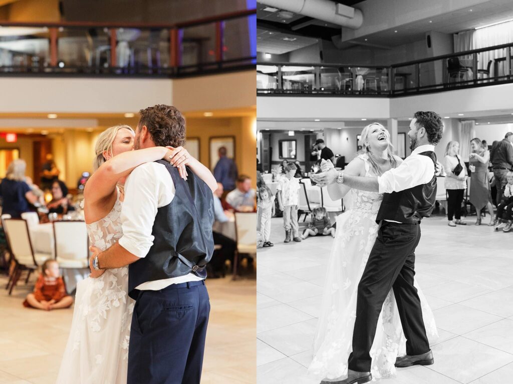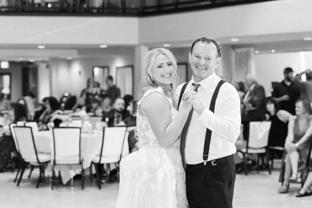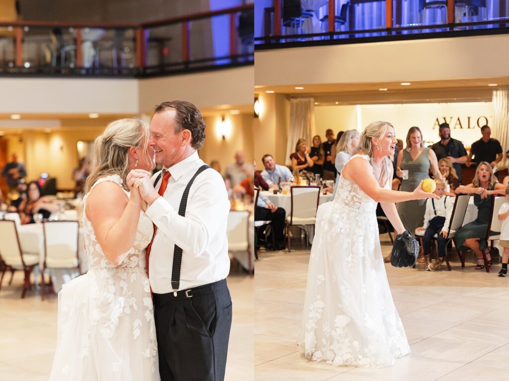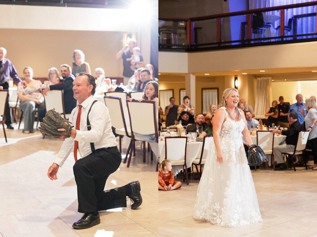 As the reception celebration started, Jenna and Alex’s friends and family helped make it a night to remember! Jenna’s Maids of Honor wrote custom lyrics to a song and sang their speech during dinner! Everyone was so surprised with song and their showmanship. Then, Jenna dug out her old dad’s old softball glove and played catch with him before starting their first dance. It was a really sweet moment between Jenna and her dad! After the room transition for the dance, the kids were ready and started the dance off strong! The party was amazing from the moment the music started playing.