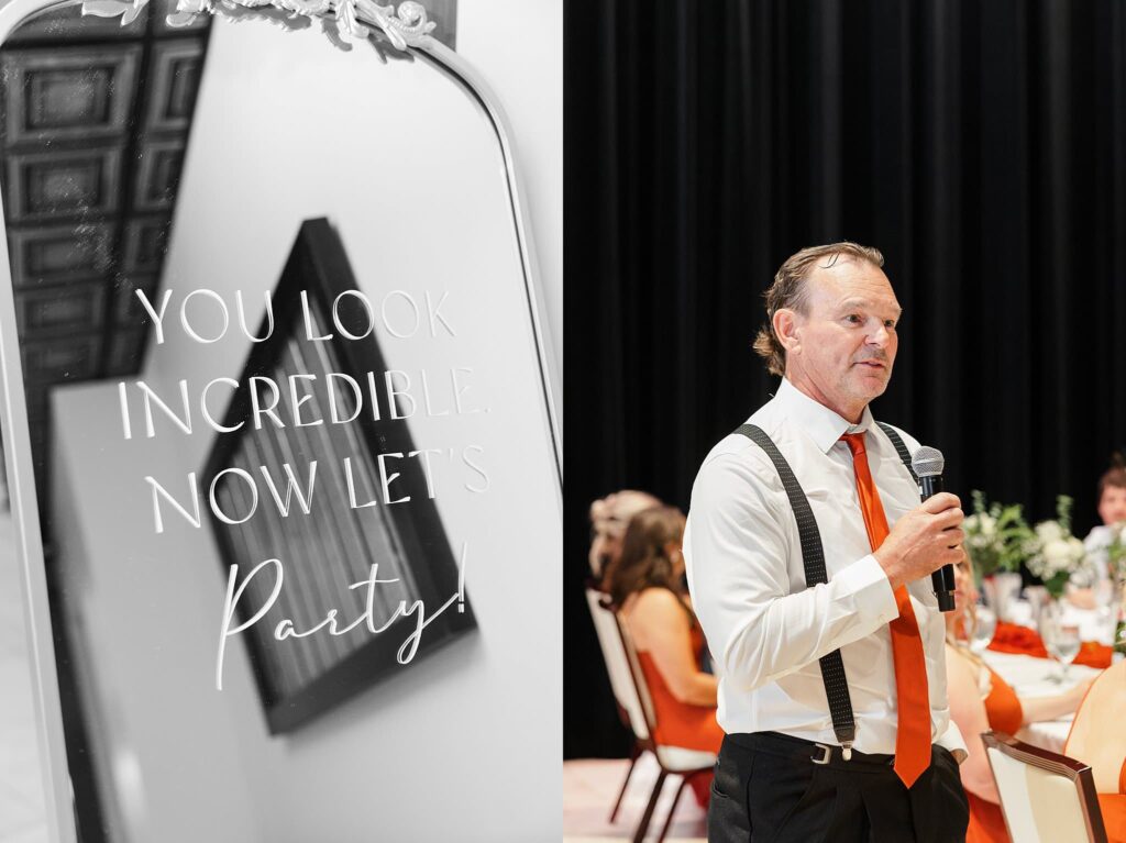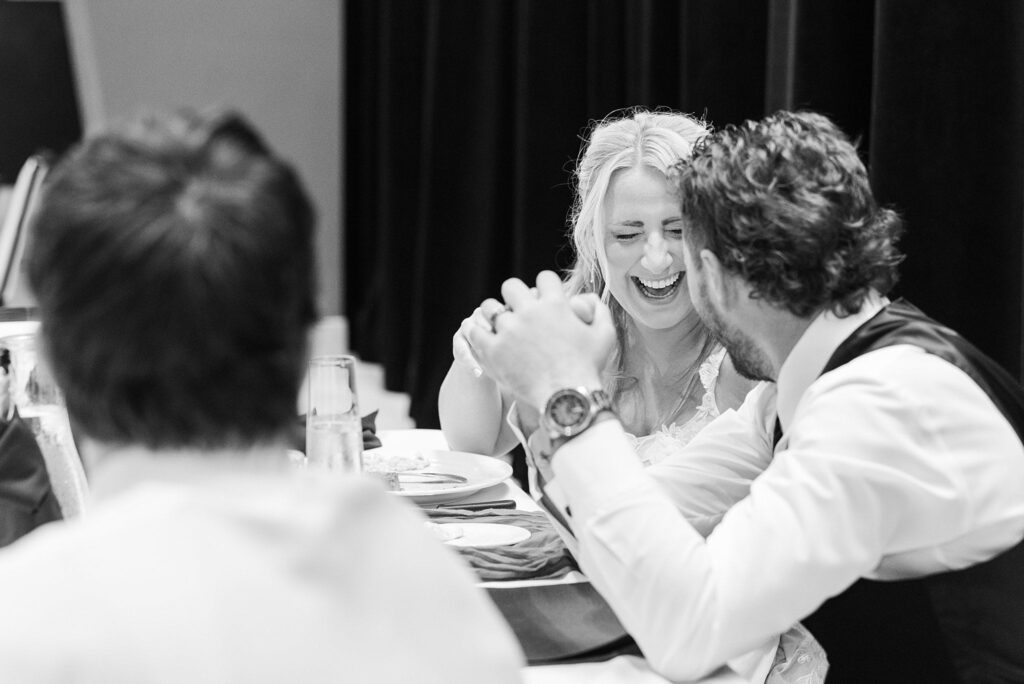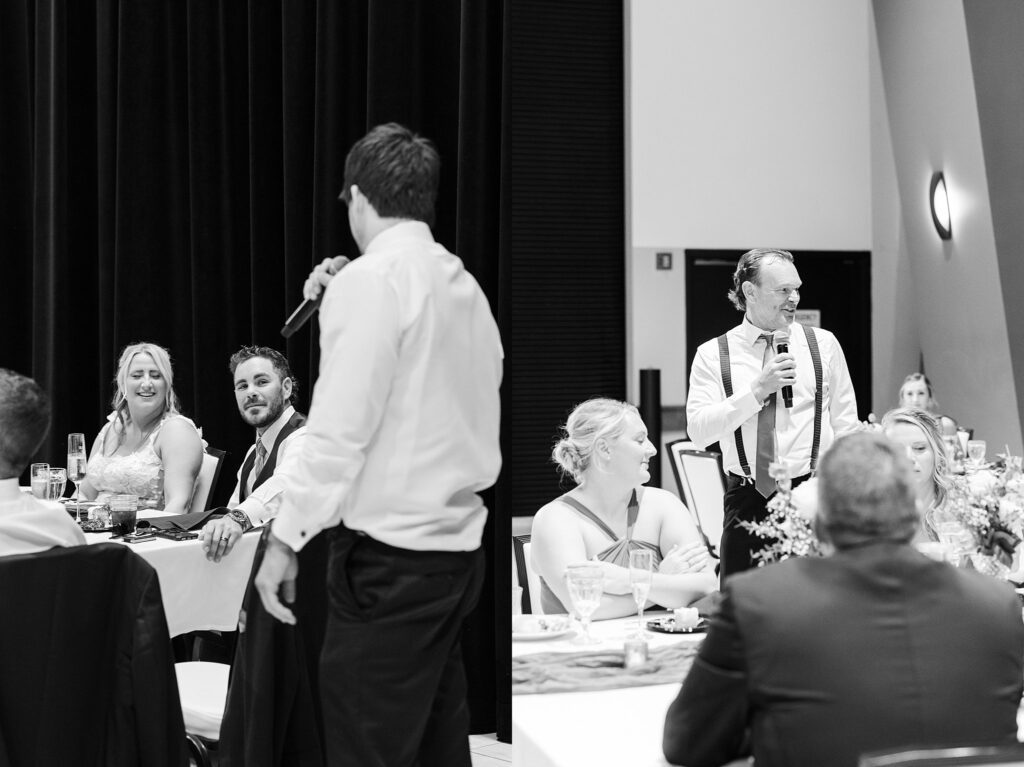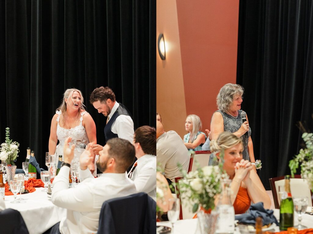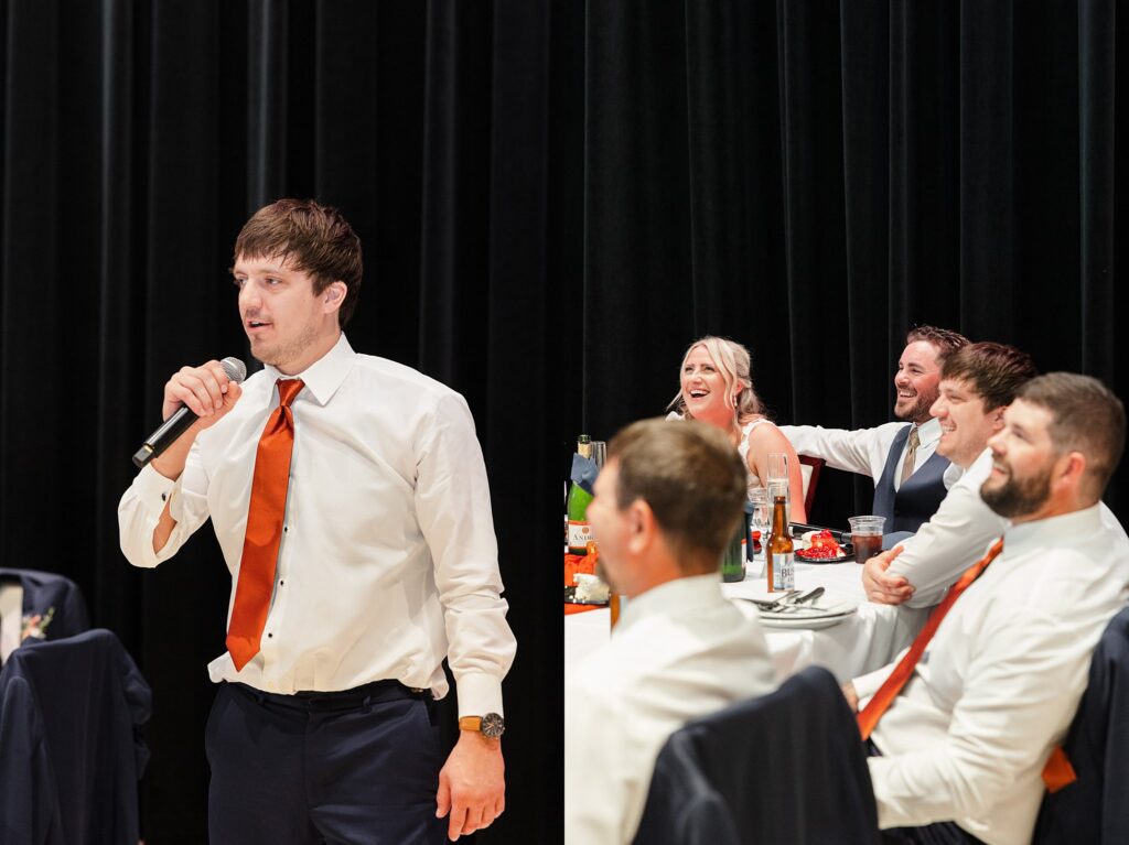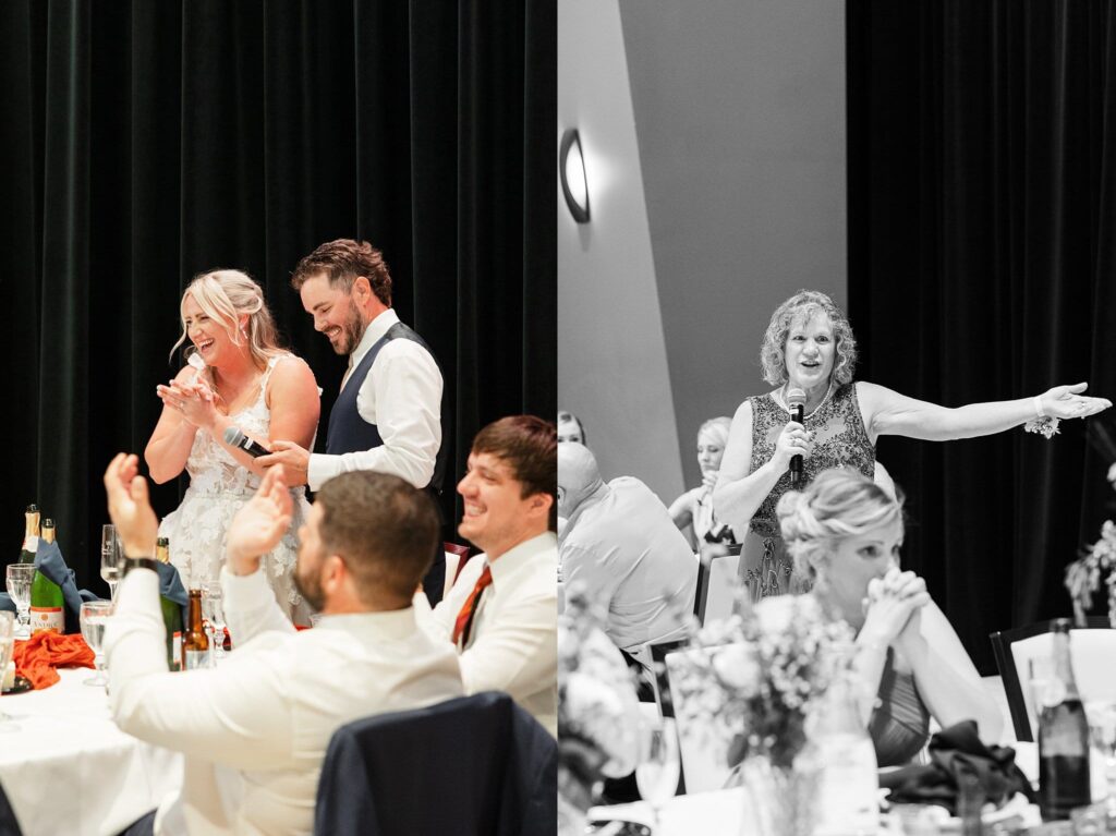 As the reception celebration started, Jenna and Alex’s friends and family helped make it a night to remember! Jenna’s Maids of Honor wrote custom lyrics to a song and sang their speech during dinner! Everyone was so surprised with song and their showmanship. Then, Jenna dug out her old dad’s old softball glove and played catch with him before starting their first dance. It was a really sweet moment between Jenna and her dad! After the room transition for the dance, the kids were ready and started the dance off strong! The party was amazing from the moment the music started playing.